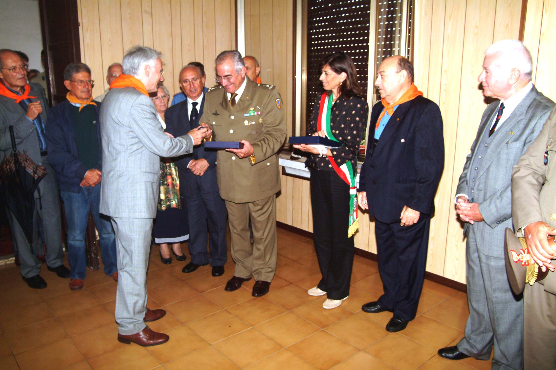 | 132 | Massimo Setta, consegna la "Spilletta", Simbolo del 43° AUC, all' Ispettore dell' Arma di Artiglieria e Comandante della Scuola di Artiglieria, Gen.B. Sergio Fiorentino. | ||||||||||