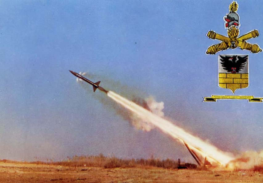 Cartolina illustrata di un lancio del missile " Honest John"